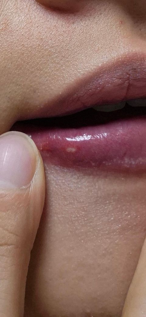 최근 스트레스를 많이 느꼈었고, 어제 입술에 딱 하나 저렇게 생겼습니다 다만 뭐가 튀어나와서 만져지거나 그러진 않습니다