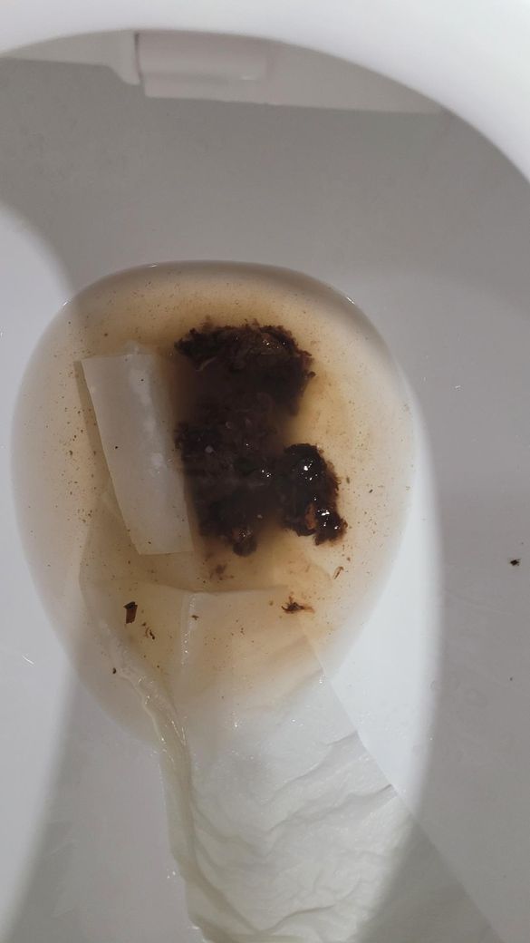 -지금 사진만 보면 소화기 출혈로 생기는 진짜 흑색변(멜레나)보다는 초코류 음식 섭취 후 생긴 착색 대변 가능성이 훨씬 높습니다.