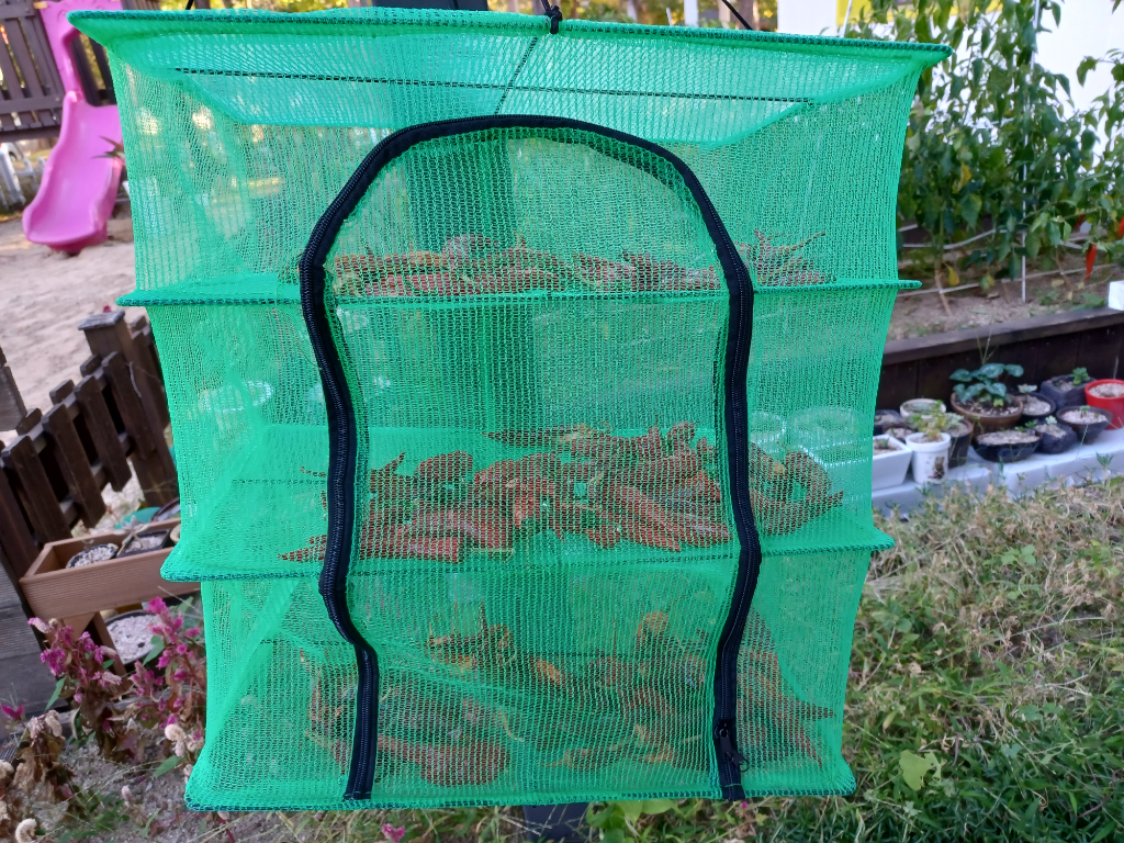 밖에서 말리면 변수가 너무 많고 이왕 말리실 꺼면 그물망 없이 태양 볕이 잘드는 곳에 말리시길 추천드립니다.