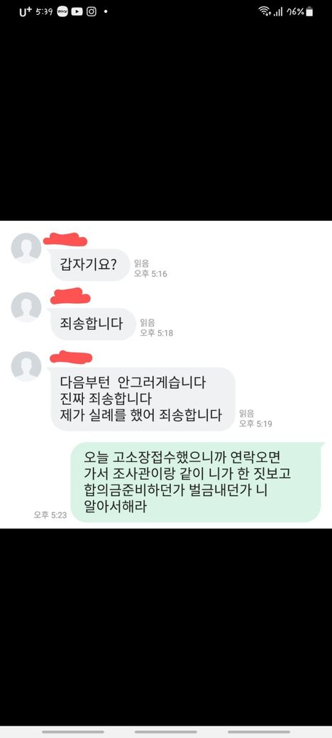 제가 사과 하고 다음부턴 안그러게습니다 하고 사과 했습니다