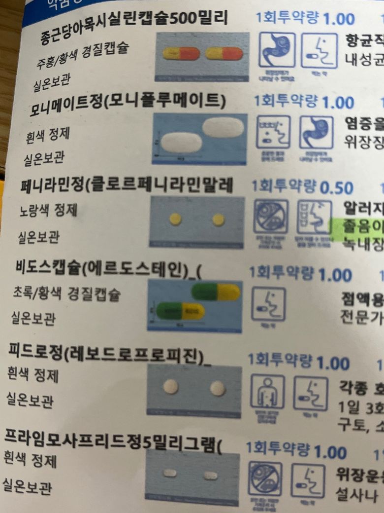 감기 때문에 처방받은 약 먹고있습니다