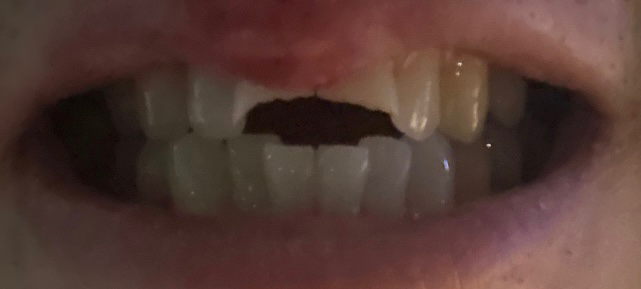 자전거타다가 앞으로 쎄게 넘어져서 앞니가 요래 파절됐습니다.