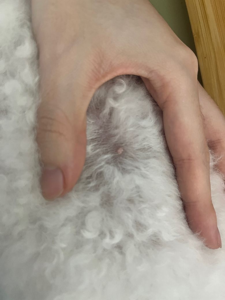 쓰다듬다가 뭔가 걸리적거려서 들춰봤더니 요런 뾰루지가 나있네요~ 강아지가 불편하게 느끼지는 않는듯한데 어떤건지 궁금해서 질문남깁니다!!