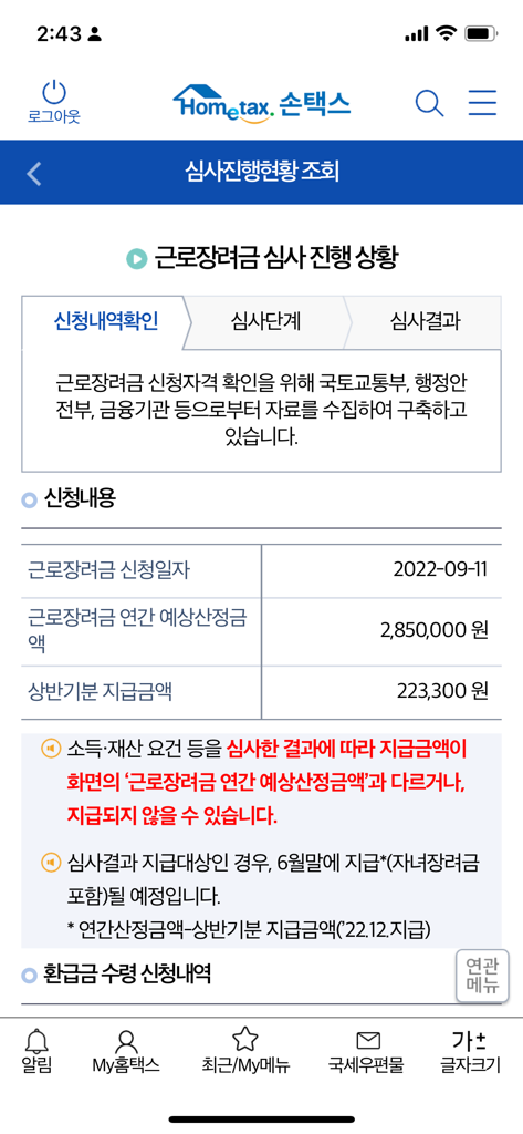 따라서, 해당 근로장려금 신청 내용에 대한 지급 여부를 주소지 관할세무서 소득세과 담당공무원