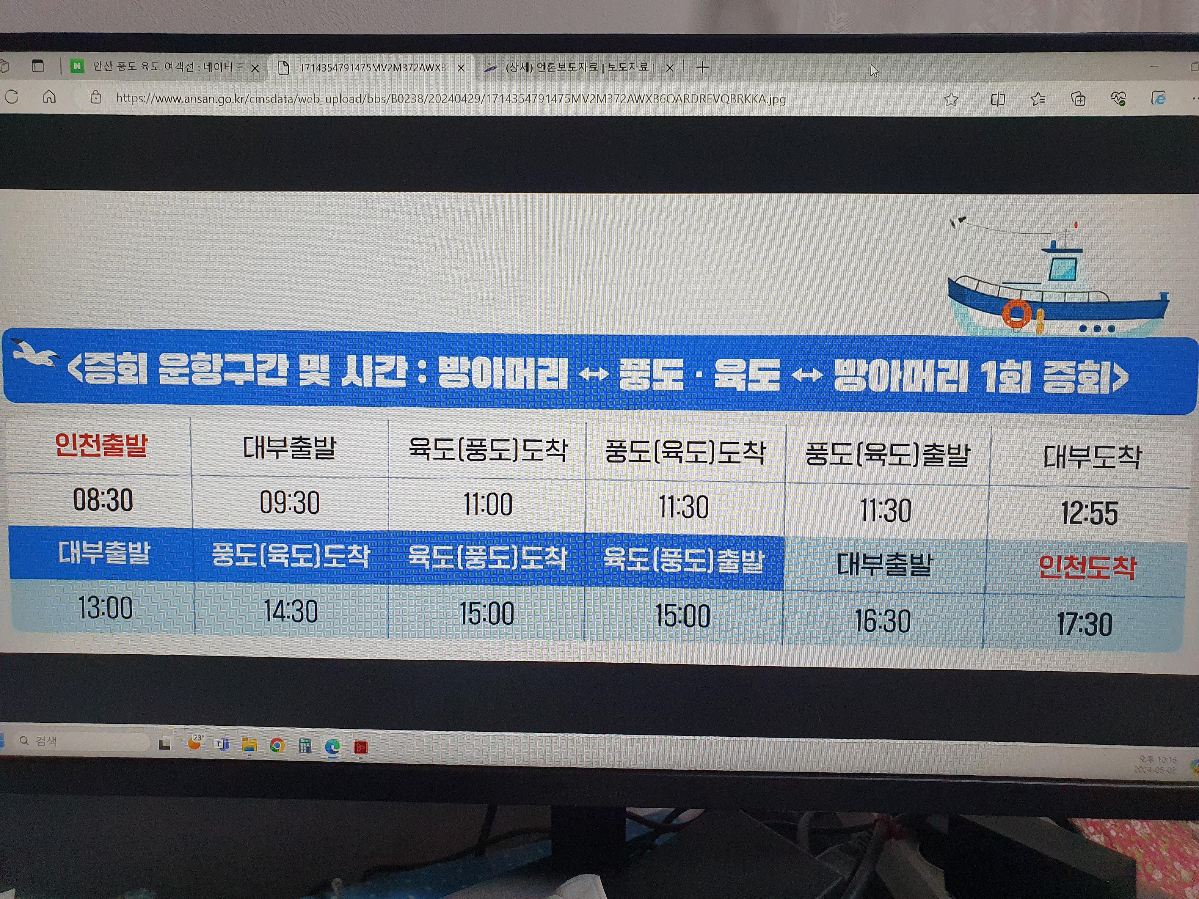 안산 풍도하고 육도를 놀러가려하는데 여객선을 타고 타고 들어갔다가 당일 타고 나올만한 시간이 되는지 알고 싶어요. 혹시 가본 경험이 있으시면 알려주세요.