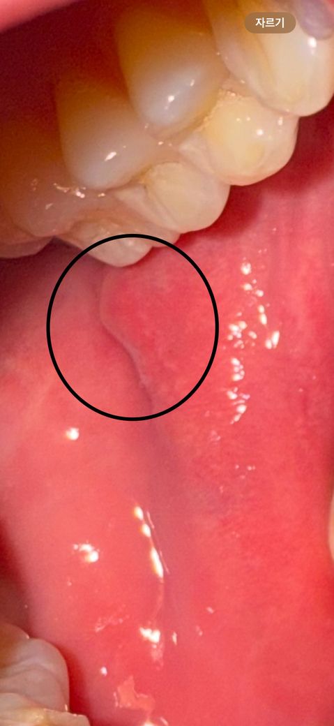 해당 병변에 대한 평가가 제한되지만, 위치가 침샘의 개구부라 추정되는데 해당 부위의 염증반응이 잘 사라지지 않고 있다면 이비인후과에서 원인을 찾아보시는 것이 좋겠습니다.