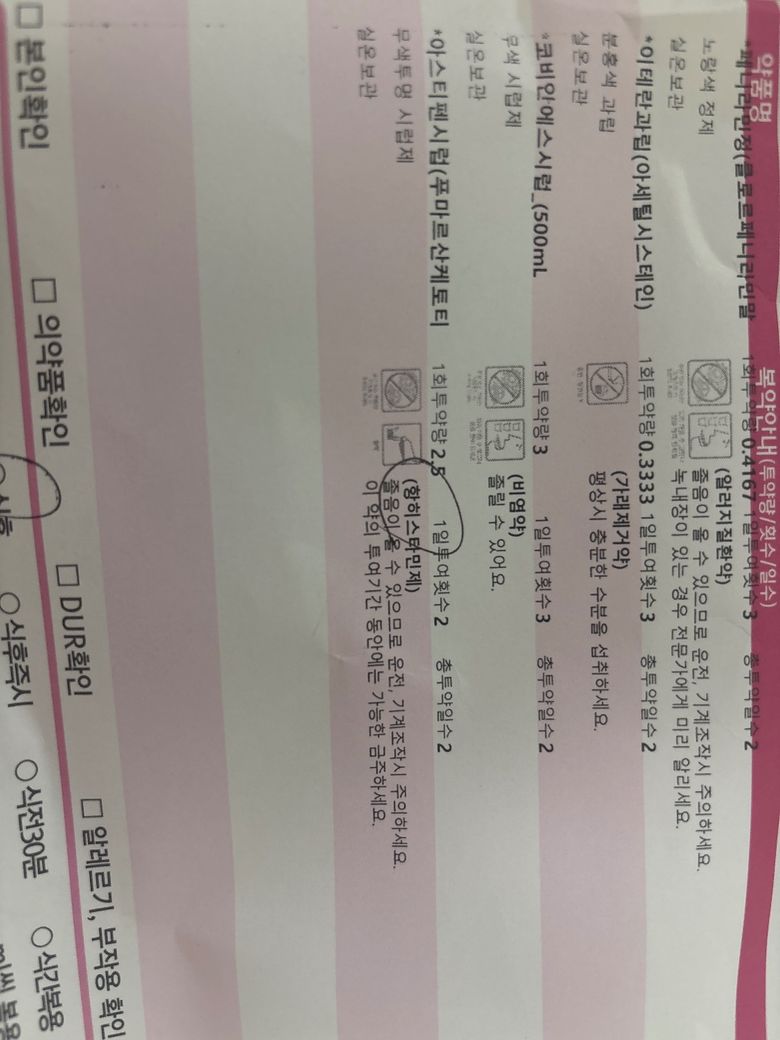 페니라민정 , 이테란과립, 코비안에스시럽, 아스티펜시럽 병원에서 처방받았는데 열이나서요