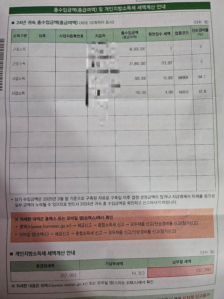 이번에 237만원 종합소득세 내라고