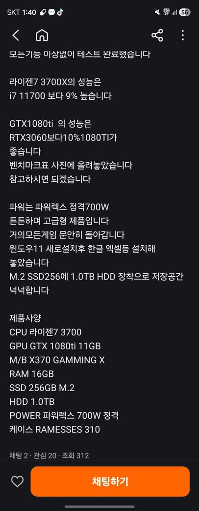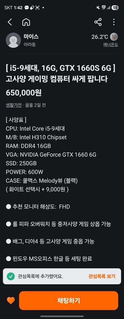 데스크탑 중고로 구매하려고하는데 가격 적당한지 부탁드립니다