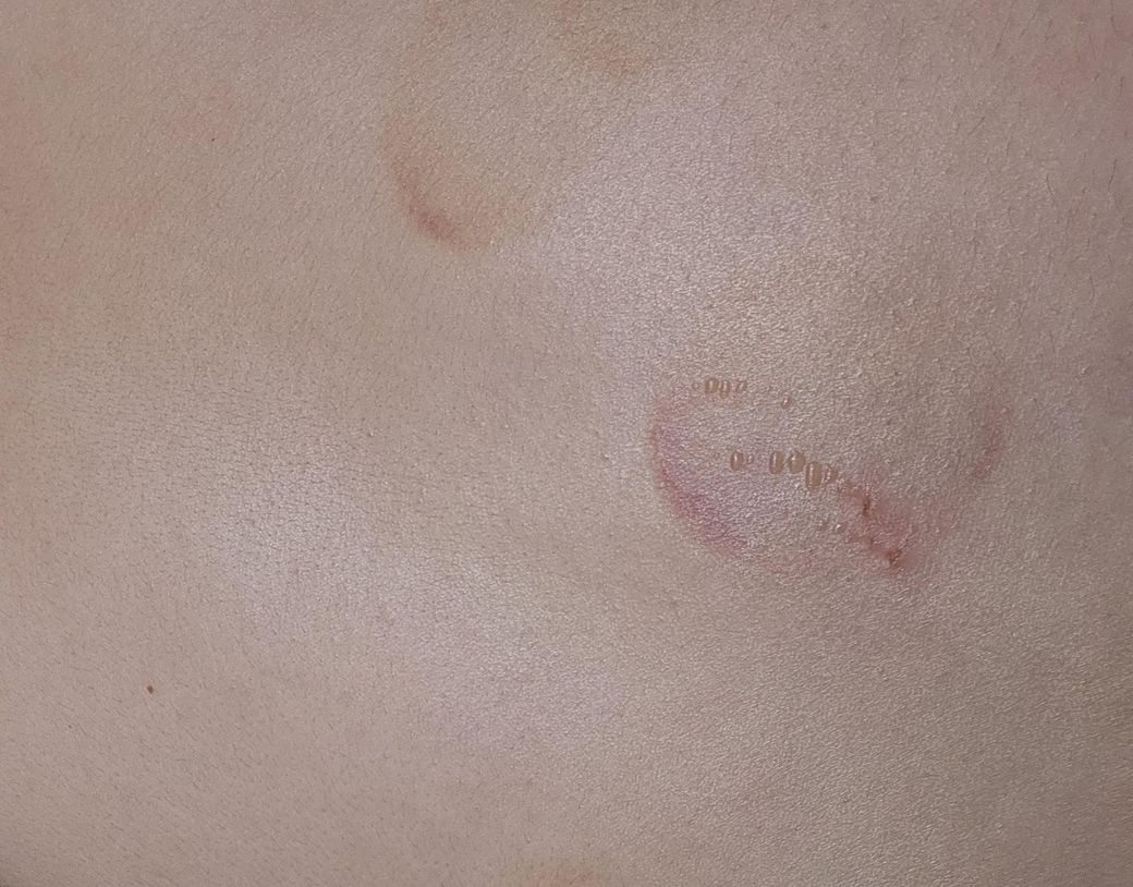 등허리에 난 수포 혹시 화상인가요? 드라이기를 1m 거리에서 전신에 안전하게 거의 2시간 가랑 중간중간 쉬면서 사용했고 어제 이 시간때에 부황 뜨고나서 잤어요.