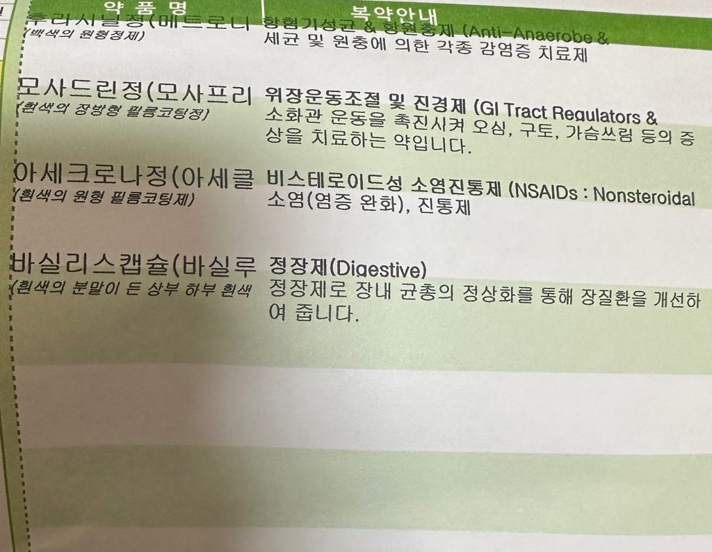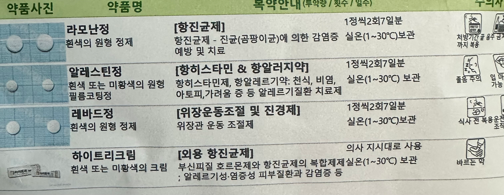 다만 항생제와 소염진통제, 항진균제 모두 위장장애를 유발하기 때문에 꼭 식사 후에 복용하는 것을 권장드립니다.