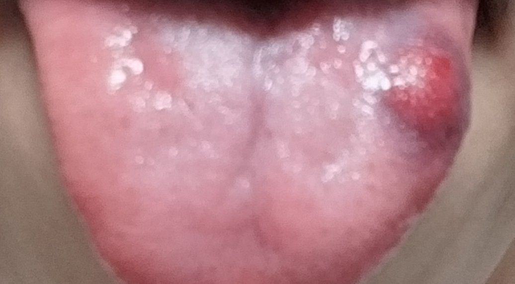 혀에 갑자기 생긴 경우, 혀를 깨물었거나 하면서 발생한 설하 출혈로 보이며