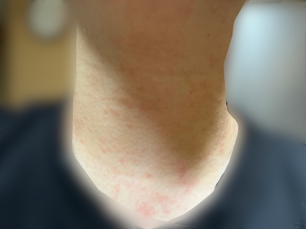 목부분이고 알러지반응이 전신으로 일어난것 같습니다.