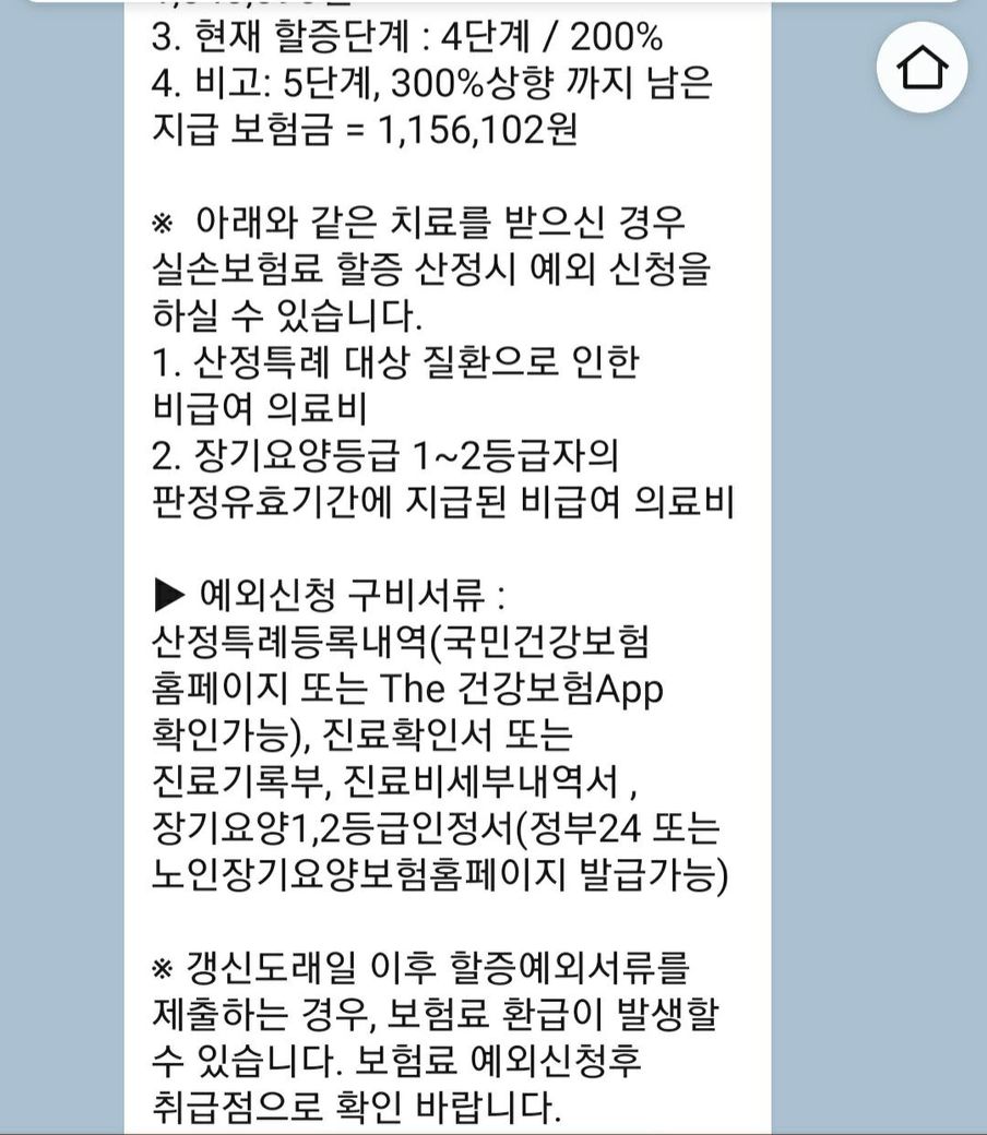 산정특례나 장기요양등급 1~2급대상자는 개인할증의 대상에서 제외될 수 있습니다 고객센타로 문의하여 관련서류를 제출하시면 예외될 수 있습니다