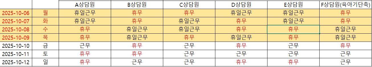 1.근무일정표에 맞춰서 일하는 상당원 근무일정표입니다.