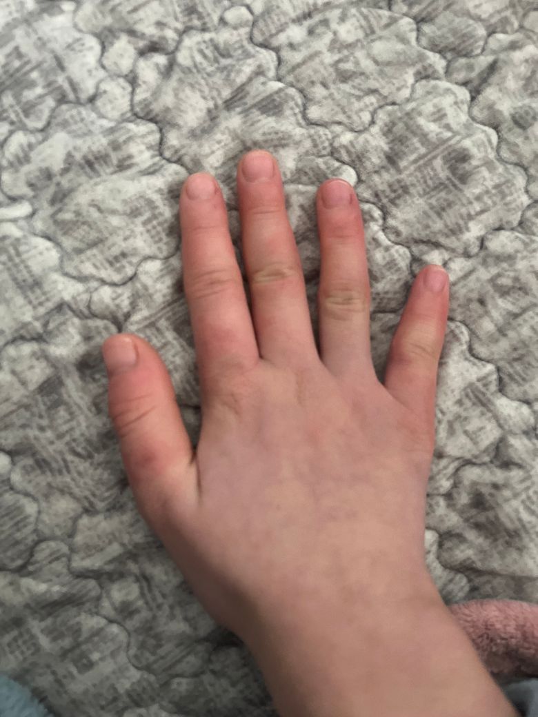 반대쪽 손과 함께 찍어주셔야 비교가 가능하겠습니다.
