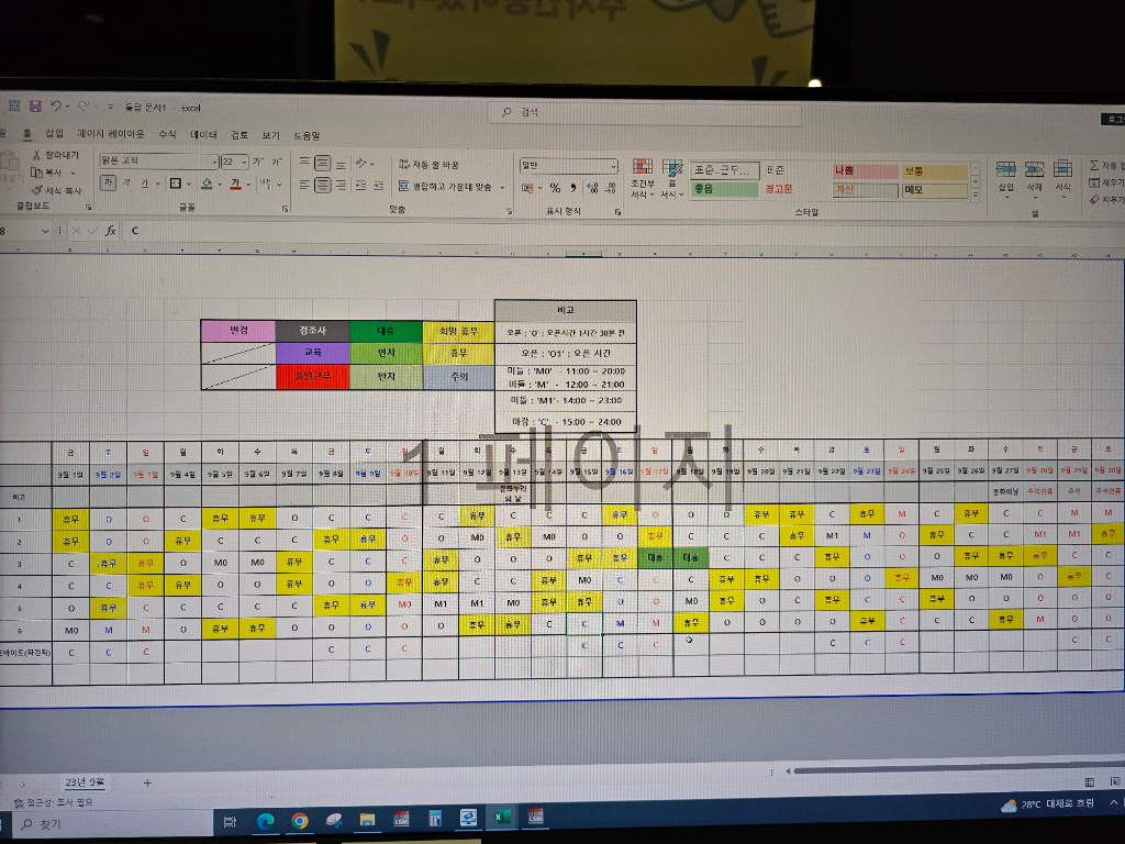 1. 스케줄표를 알아보기가 어렵습니다. 5인 이상이 일한 날이 한달의 1/2 이상이면 5인 이상 사업장입니다.