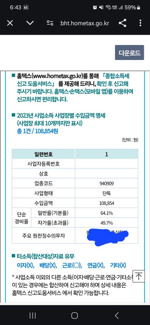 23년도에 근로소득과 사업소득이 있으셔서 안내문이 나오신 것 같습니다