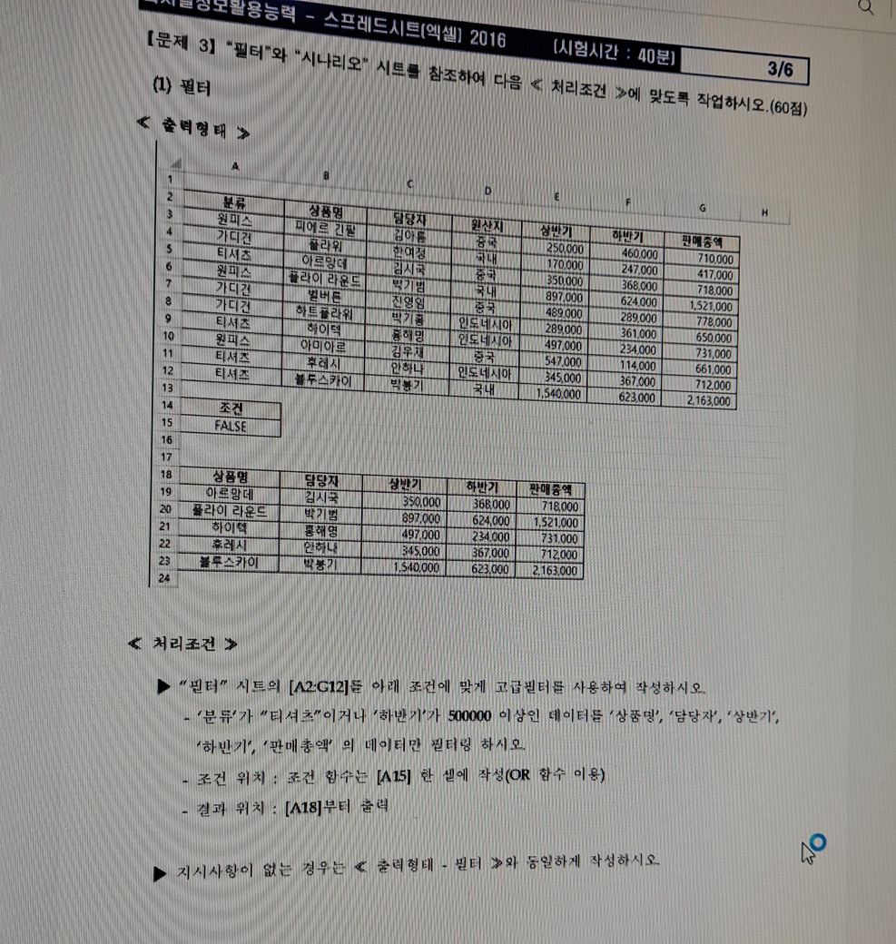 아래 처리 조건에 맞게 저거 출력형태 처럼 나와야하는데 =OR 조건을 어떻게 써야할지 모르겠어요 제가 계속 쓰는데도 안나와서 좀 알려주세요