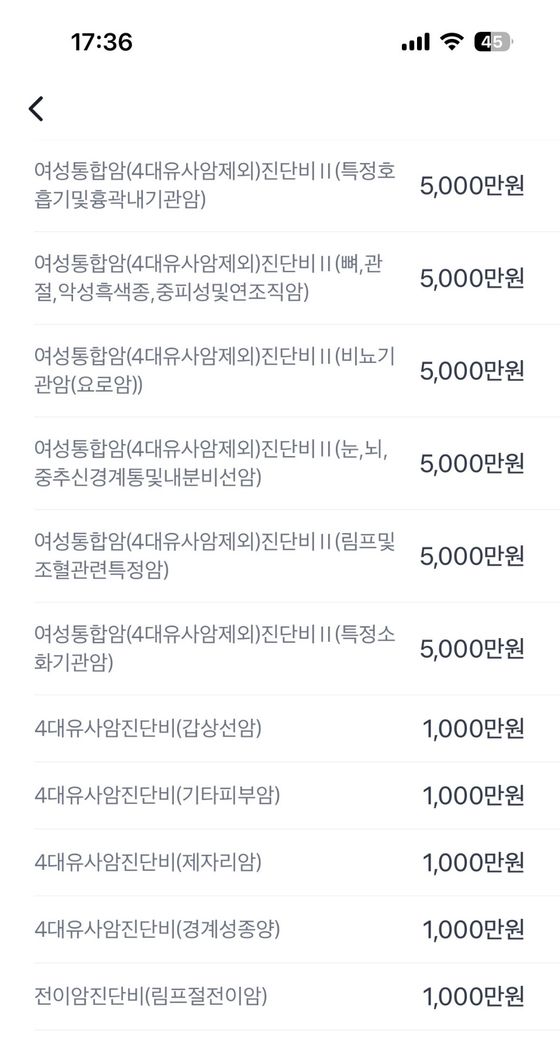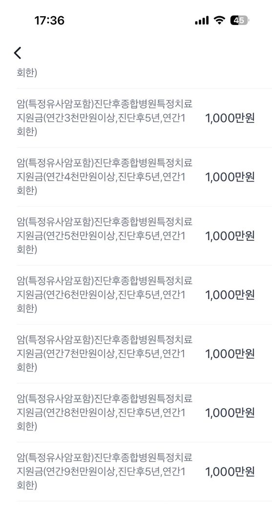 이후 림프암해당 부위를 제외한 다른부위 암이 발생했을때도 각 부위별로 5천만원씩 보상되세요~
