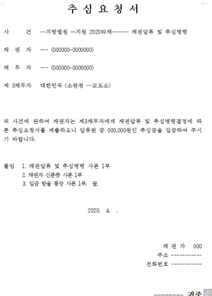 그래서 저 또한 구치소에 연락해 추심 신청을 위한 서류를 여쭤보았는데