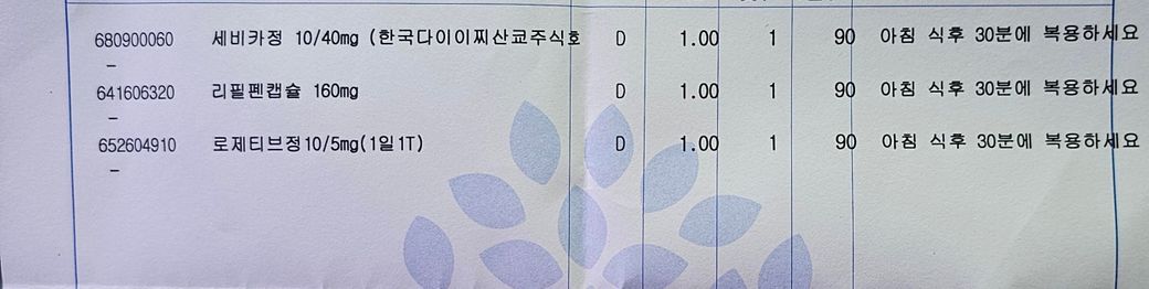 칼슘채널 차단제 고지혈증 약등을 복용중인데