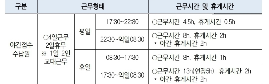 평일 야간근로수당은 5.5시간*9,160원(2022년 기준)*0.5= 25,190원이며, 휴일 야간근로수당은 6시간*9,160원*0.5= 27,480원입니다. 휴일 오전조 휴일근로수당은 8시간*9,160원*1.5= 109,920원, 오후조 휴일/연장근로수당은 (8시간*1.5+5시간*2)*9,160원= 201,520원입니다.