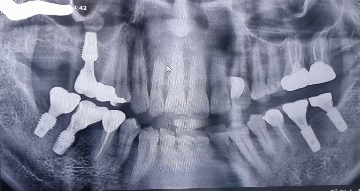 우측 하악에 임플란트 염증으로 녹은 상태에서