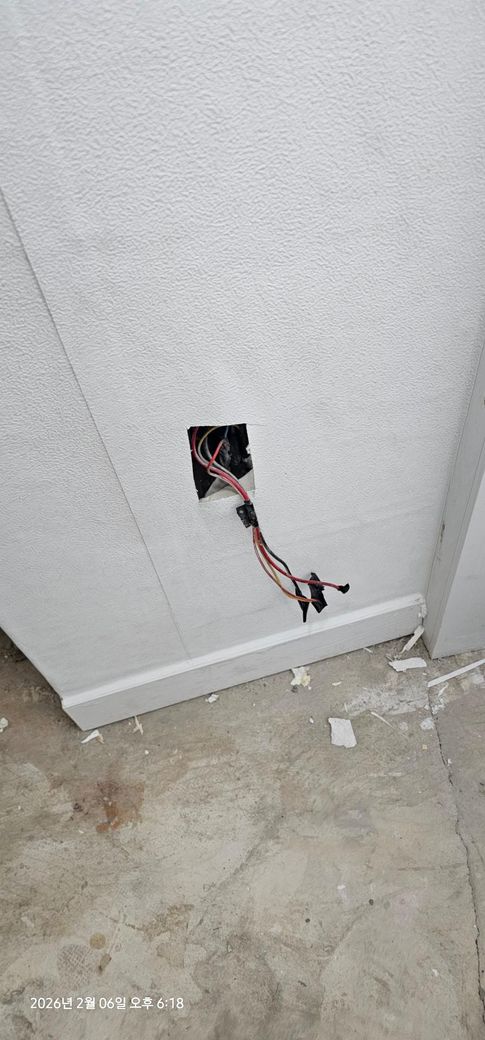 사진상 굵은 빨강 검정은 전원선, 얇은 빨강 노랑은 신호선일 가능성이 큽니다. 콘센트에 굵은 선만 사용하며, 빨강선은 전원, 검정은 중선선으로 연결하고 얇은 선은 절대 연결하면 안됩니다.