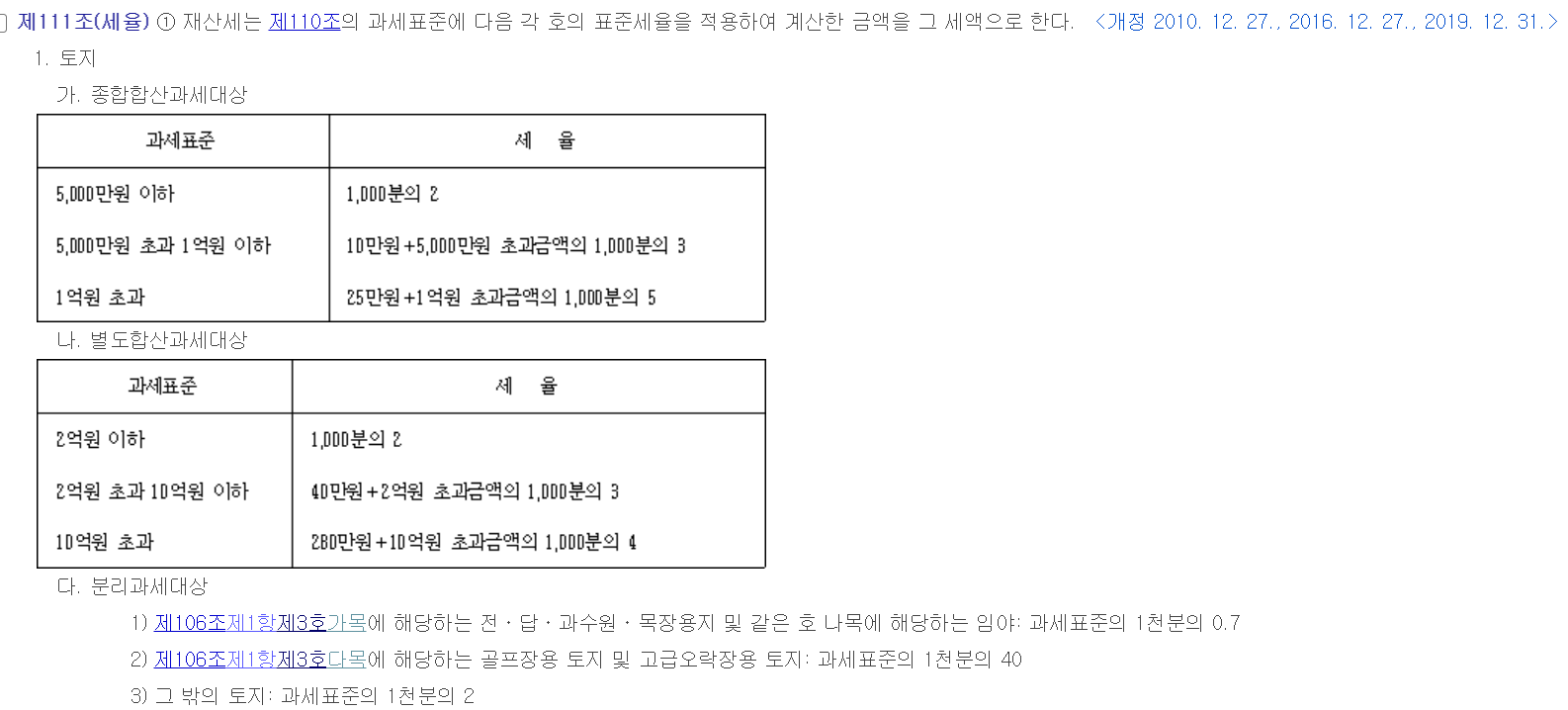 재산세에서 토지의 부과과세표준 및 세율은 아래와 같습니다.