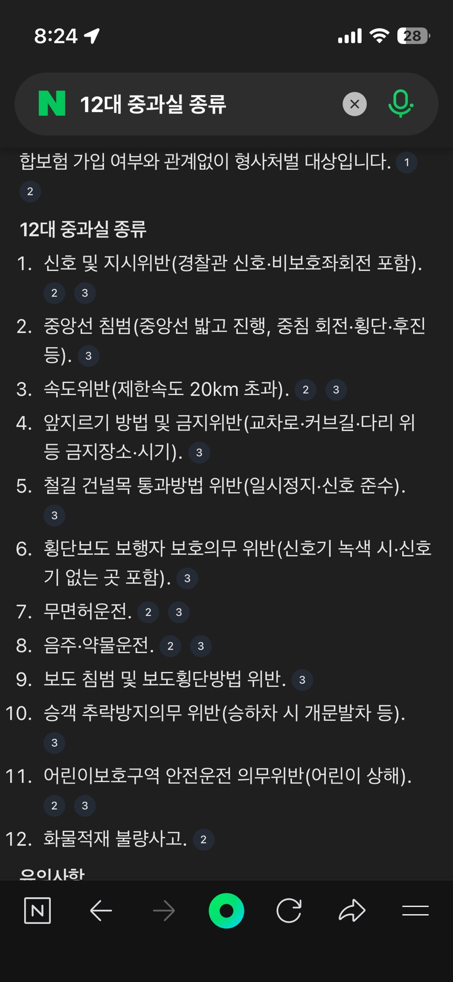 그외의 12대 중과실 사고는 모두 문제없이 보험 처리가 됩니다.