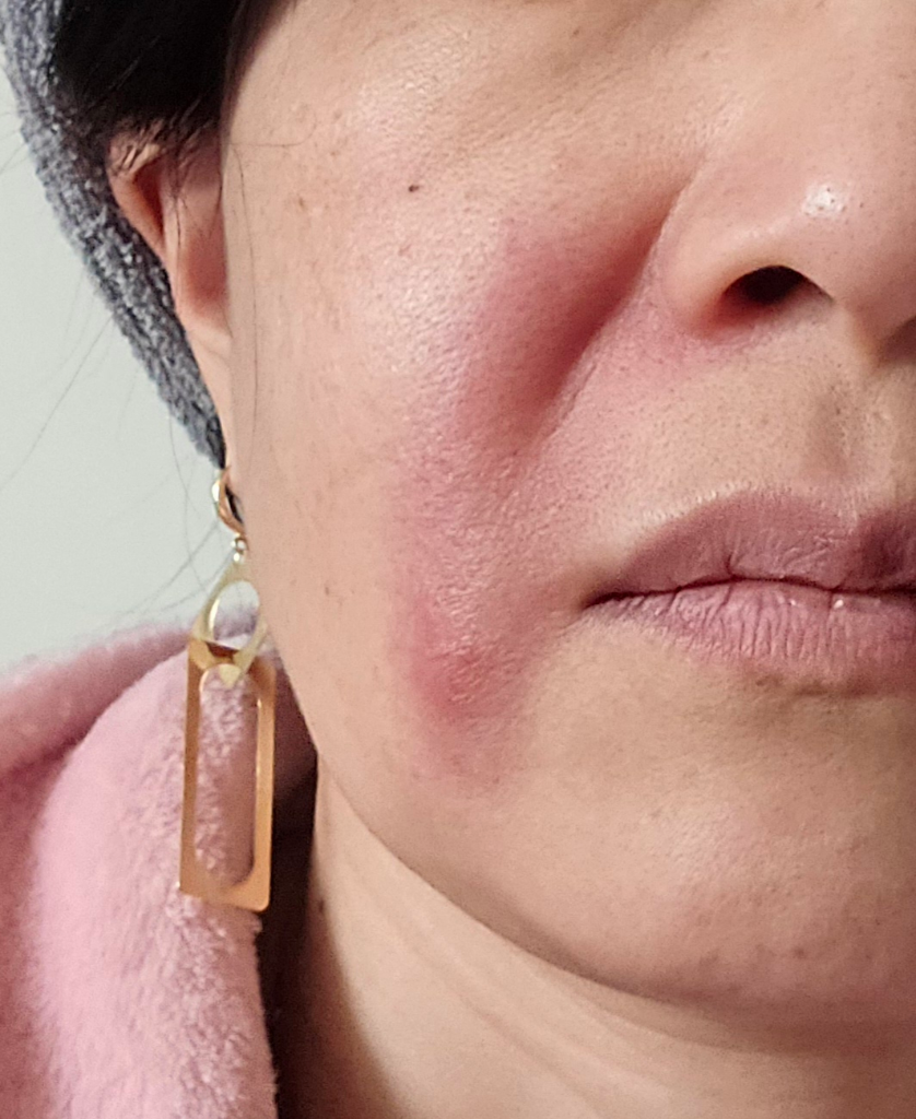 한달전 입 쪽 사진 아랫부분쪽에 벌레 물린것처럼 부어올라 작은버짐이 생기더니 일주일정도 지나니 없어지고 있었는데 며칠전 극도의 스트레스로 인해 신경쓸일이 많았는데 갑자기 얼굴이 저렇게 벌거지며 밑에쪽은 버짐처럼 껍질이 생기고 열감이 느껴지면 가려움도 종종 동반합니다.