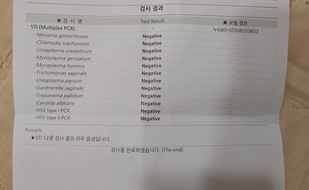 업로드해주신 검사결과는 STI (sexually transmitted infection, 성매개감염병 검사 ) 12종입니다