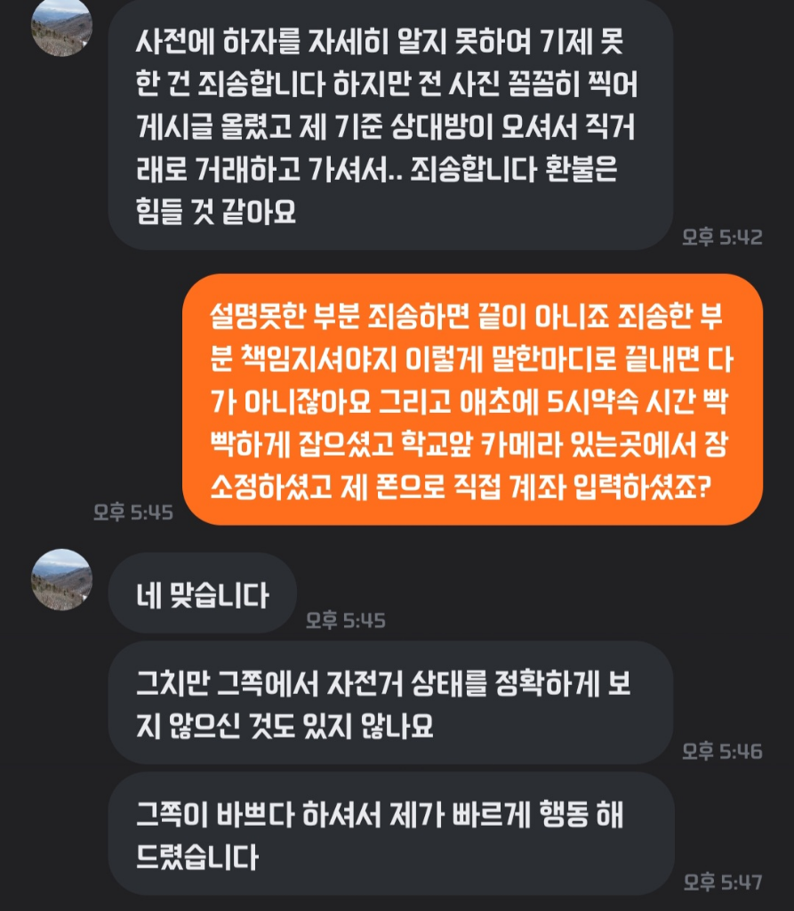 직거래 당시 시간도 촉박하고 서로 바쁘다고...