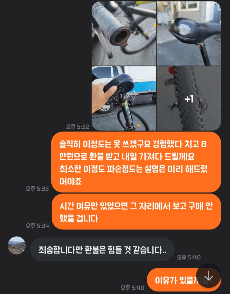 당근거래 사진엔 없는 파손부위 환불 요구 거부?