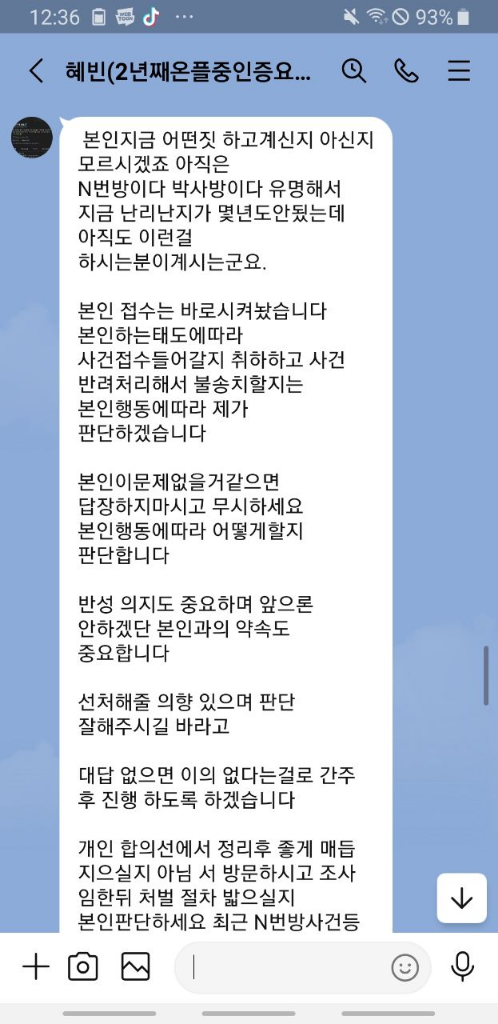 더욱이 상대방은 스스로 음란한 영상을 팔겠다고 게시한 사람으로서, 합의금을 지급받을 목적으로 협박을 하는 것이라고 판단되며, 오히려 공갈죄 등 범죄가 성립하기 때문에 실제 고소하지 못합니다.