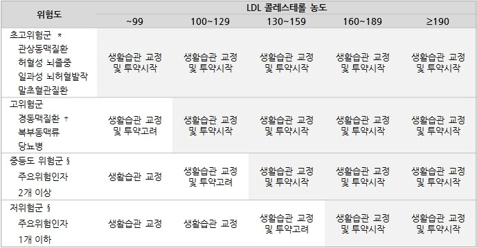 위험인자가 많으면 (고지혈증 걸릴것같은 사람) 조금만 높아져도 바로 치료를 시작 하고요