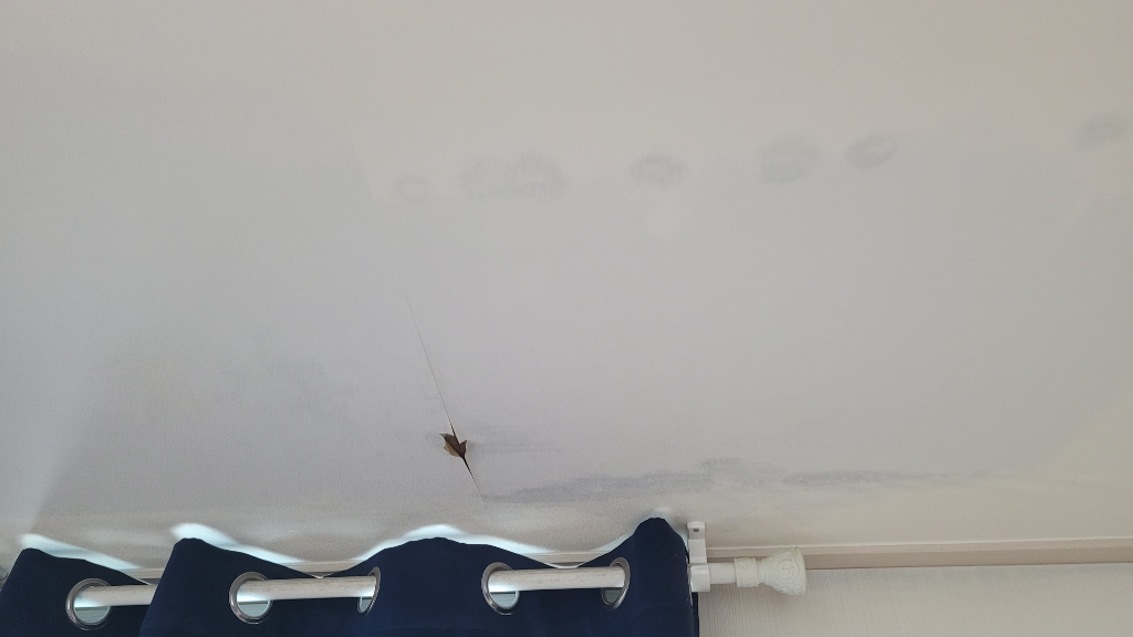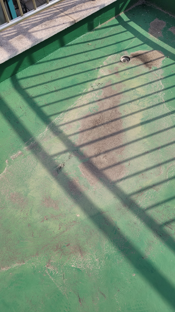 사진에서 보이는 것처럼 천장에 누수 피해가 발생했고, 옥상을 확인해보니 배수구가 위치한 곳이고 그 주변에 방수 페인트도 벗겨져 있었습니다.