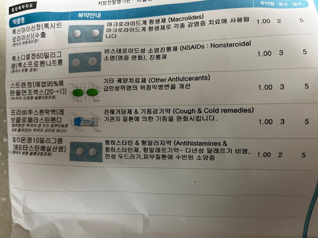 건조하고 그래서 이비인후과에서 항생제랑 항히스타민제 등을 5일치 정도 처방받아서 먹고 있었습니다