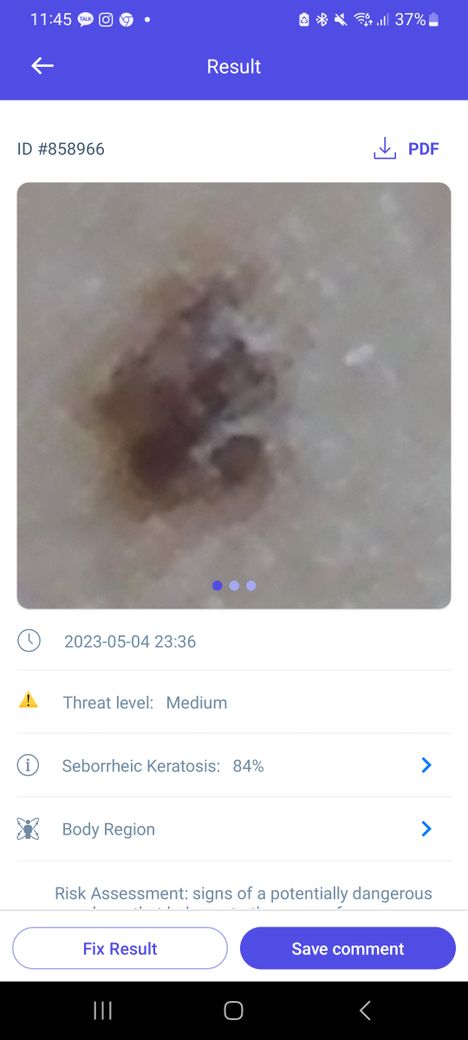 AI 앱에다가 한번 검사를 해봤는데 지루각화증이라고 떴어요 만약 사실이라면 빠르게 제거해야 할까요? 아니면 그냥 냅둬도 돼나요?