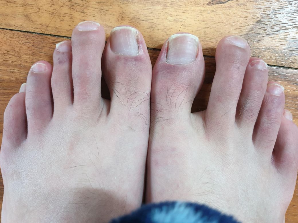 현재 수족냉증이 있어서 겨울만 되도 손발이 많이 차갑습니다. 작년까지는 발 색깔이 다르긴 했어도 심하게 다르진 않았는데 올해는 사진처럼 검붉은 부분도 생기고 색깔도 더 진해졌습니다. 누워서 발을 위로 올려놓으면 그나마 괜찮아지지만 검붉은 부분은 그대로 있습니다.