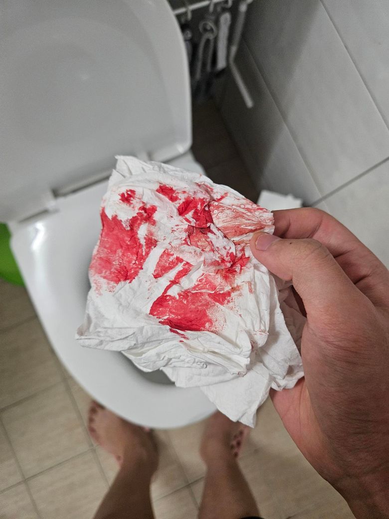 변을 보고 변기를 보니 핏방울이 떨어져 퍼지고 있는 모습을 보았습니다. 휴지로 닦으니 역시나 피가 많이 묻어 나왔습니다. 쌀때 따끔함이 있었는데. 치질일까요?