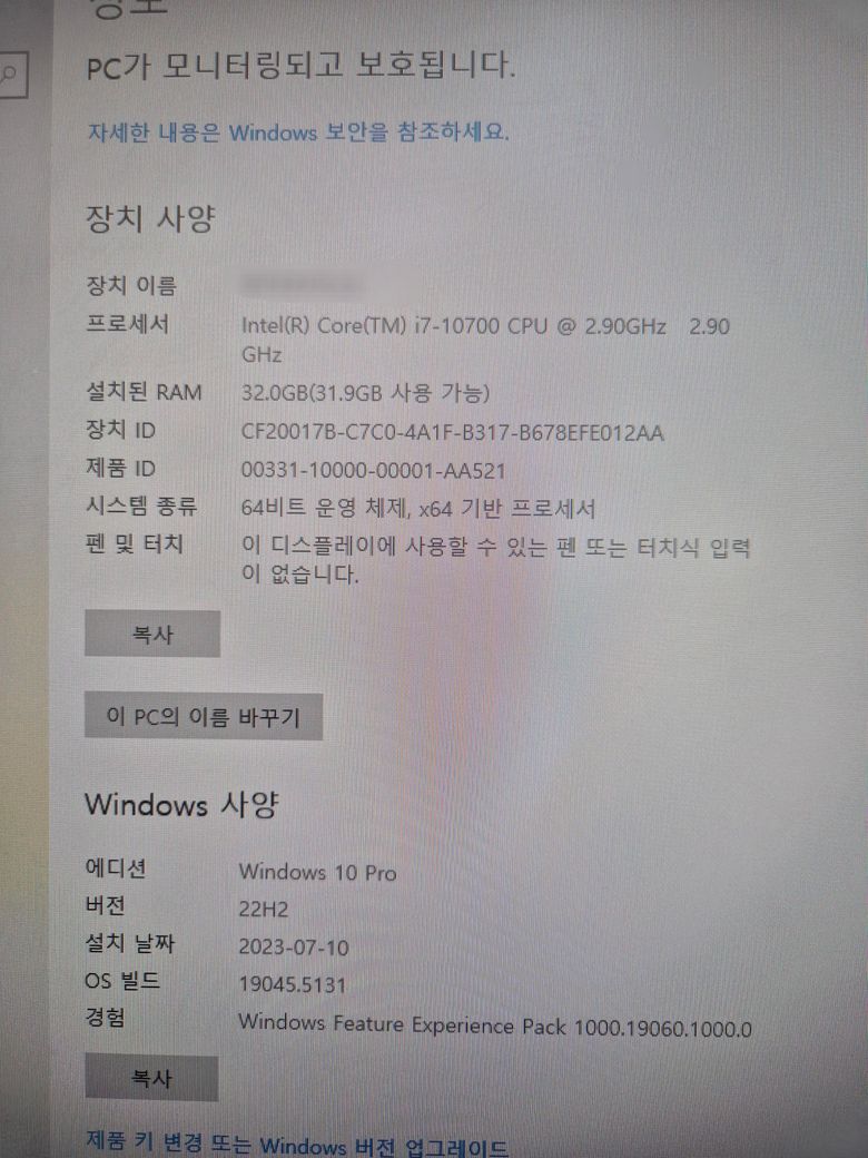 현재 피씨사양은 아래와 같습니다.