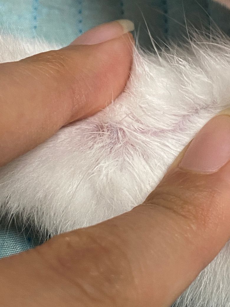 계속 고양이가 핥고 자극하는 경우 염증 및 감염이 생길 수 있으니 넥카라 있으면 착용해주시기 바랍니다.