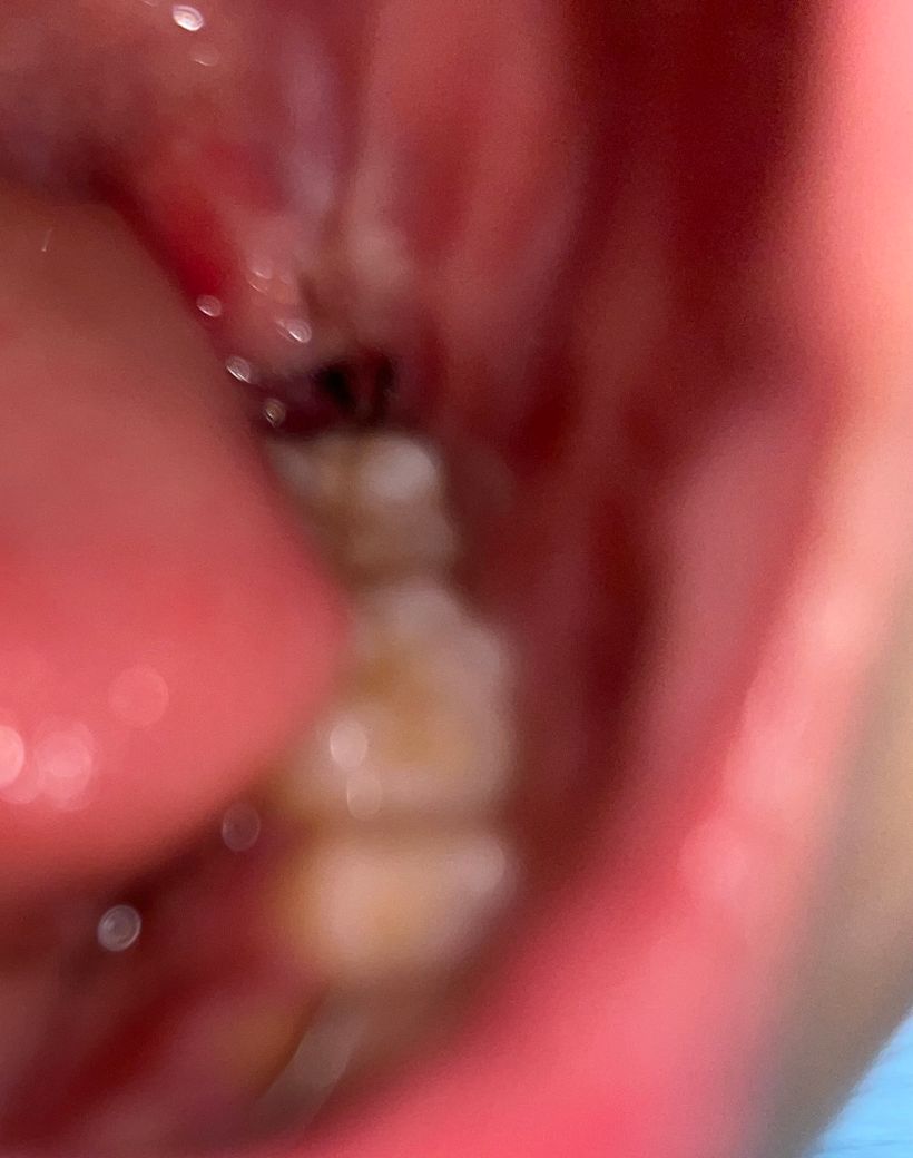 우선 염증이 덧나지 않도고 소독용 헥사메딘 가글액으로 가글하여 관리하고, 양치는 부드럽게 하여 해당부위를 자극하지 않길 권합니다.