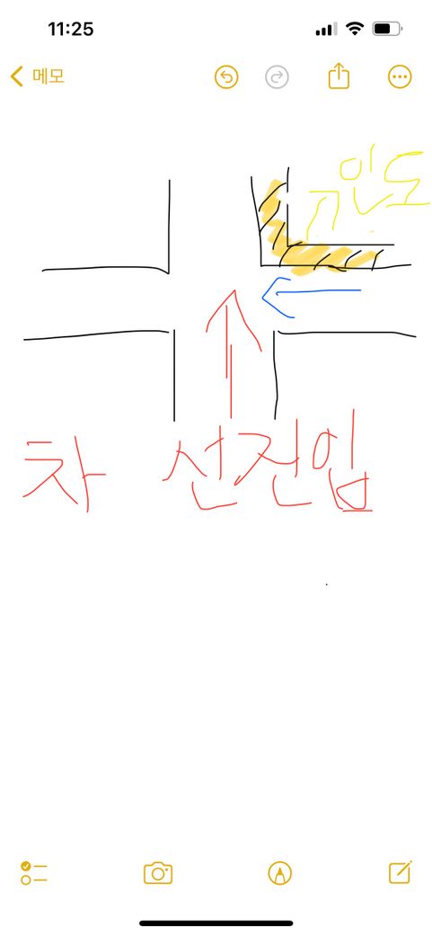 사거리 진입하며 좌측에서 차량이 와서 속도를 줄였고