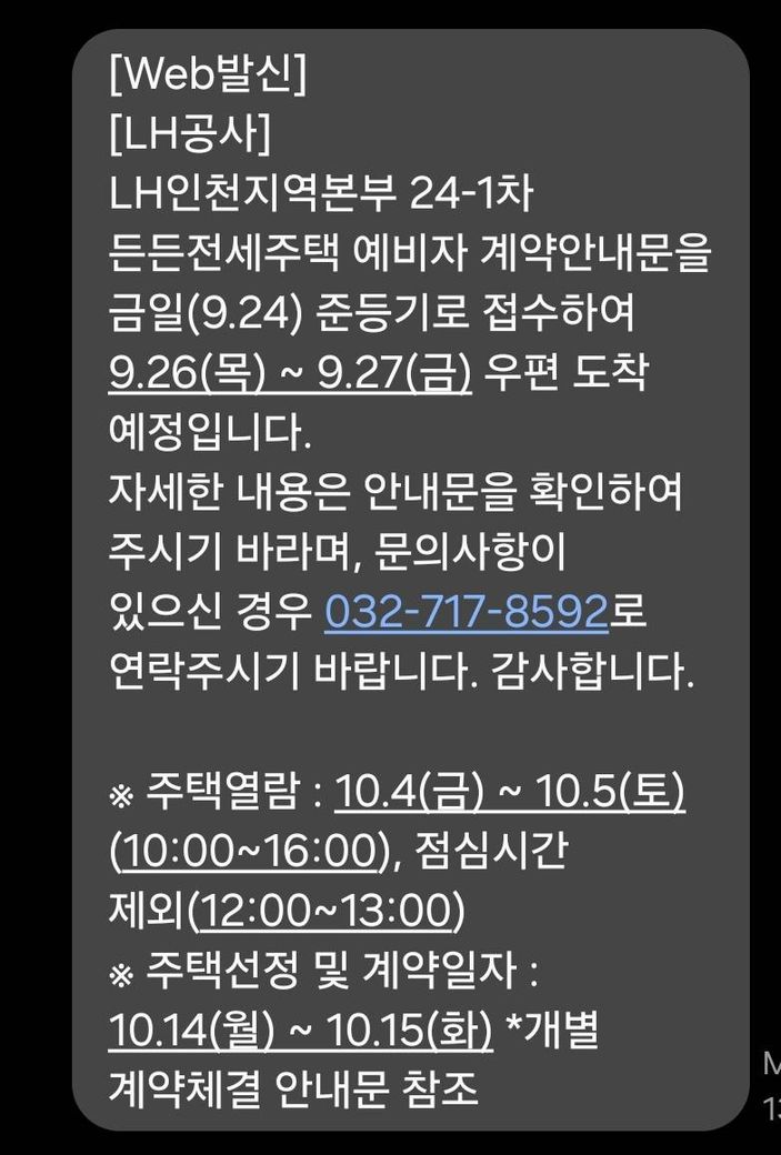 LH에서 청약신청후 예비66번떴다가 약 1달후 아래사진과 같은 문자가 왔는데 이건 청약 당첨됐다는 문자인가요?
