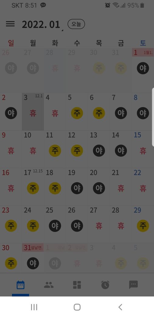 생활지도원 3교대 근무표? 주말 근무 연차발생 할까요?