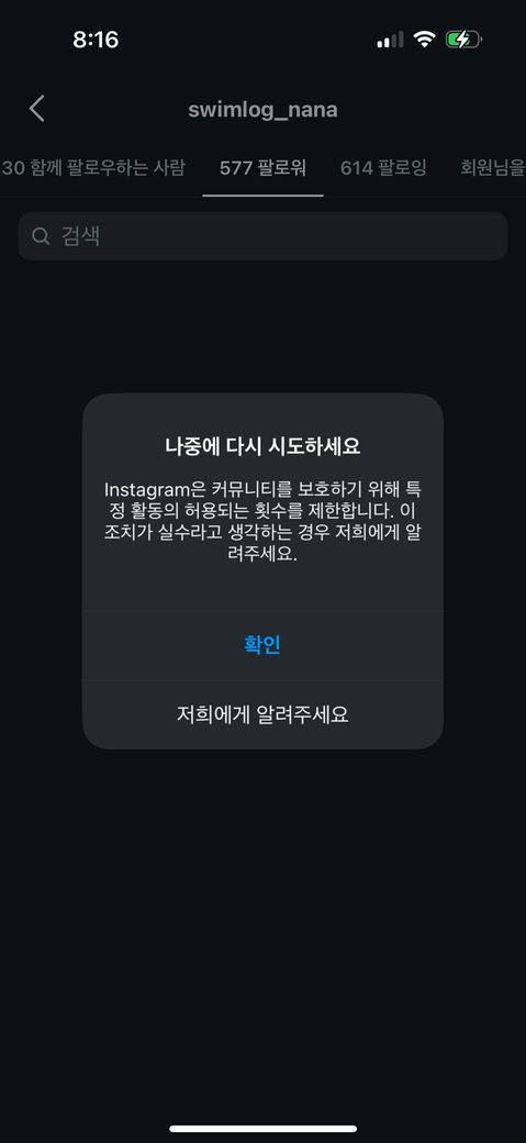 잠시 활동을 멈추거나 팔로우/언팔을 자제하시고 앱을 재시작도 한 번 해보시구요.