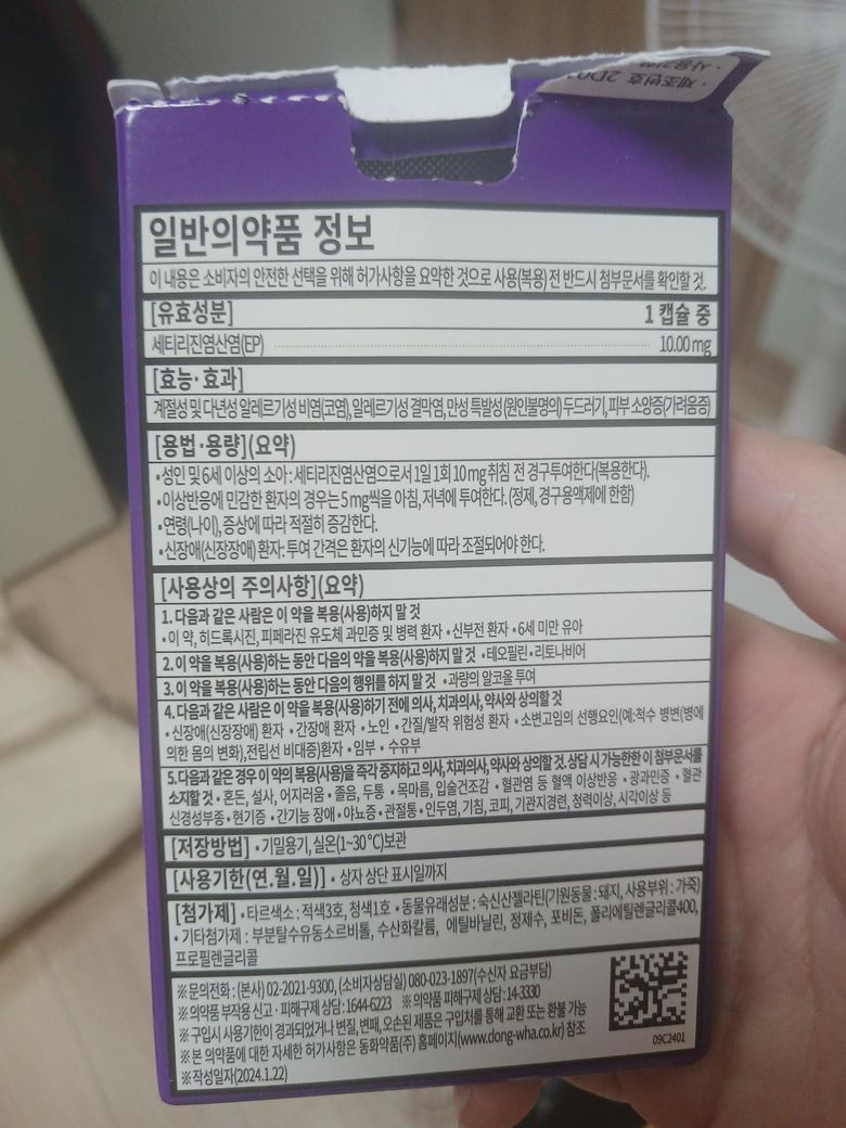 세티리진염산염 성분 항히스타민 알러지약과